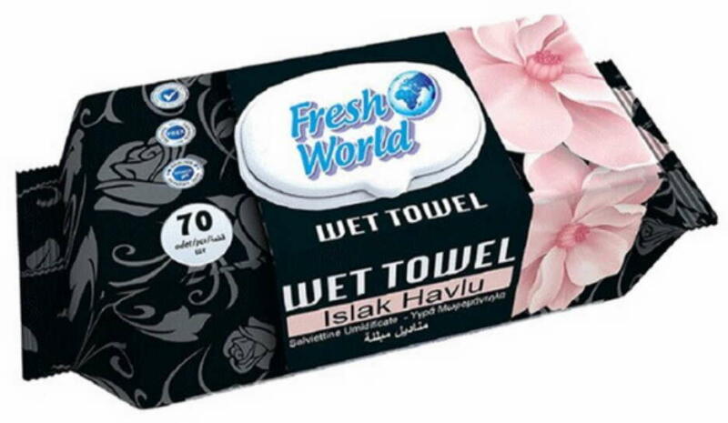 Nedves törlőkendő, mely kupakkal visszazárható. 70 lapos.